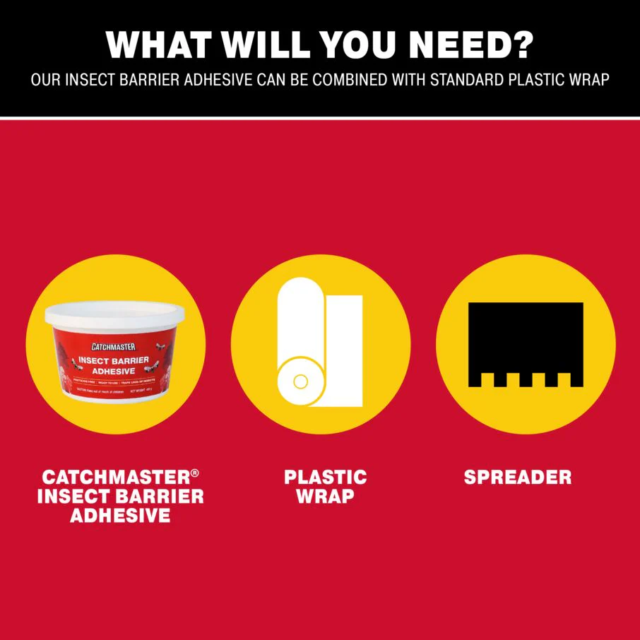 The Catchmaster Tree Banding Insect Barrier DIY Kit provides a complete solution for monitoring and controlling crawling insects on trees, shrubs, and fruit plants. This kit allows users to create adhesive tree bands using standard plastic wrap, intercepting pests as they move along trunks. Perfect for managing spotted lanternflies, ants, cankerworms, moths, beetles, caterpillars, stink bugs, cicadas, and other crawling insects, it supports proactive pest monitoring and population control throughout the growing season.